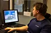 Inne på kontoret sitter Jonas Nordli (29 år), med pc-skjermer og et høyteknologisk system for å følge med på svømmenymfene i Sammen sitt svømmebasseng.