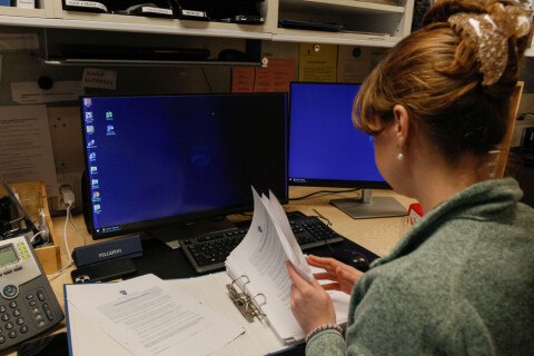 Arbeidsoppgavene hennes er litt papirarbeid, passe på at de innsatte kommer og går til tidene de skal, og at de er der de skal være.
