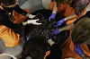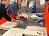 Åtte hender jobber for å skille mesopelagisk fisk fra maneten.