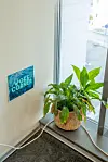 Innerst i hjørnet er det plassert et lite tre, med påskriften «Woke corner».